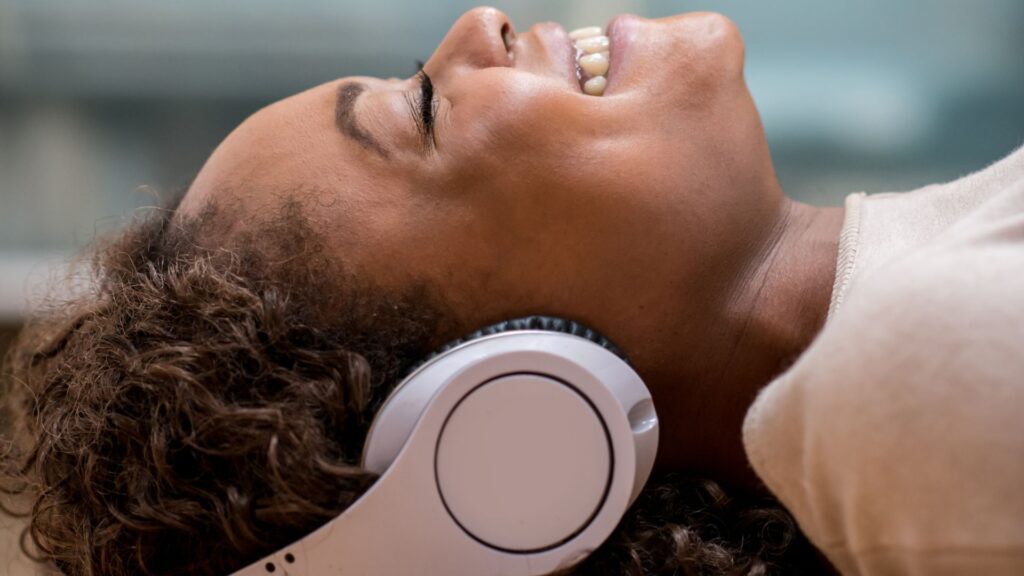 Allongé·e sur un tapis, casque audio sur les oreilles, vous vous laissez porter par une playlist spécialement conçue pour accompagner l’exploration intérieure.